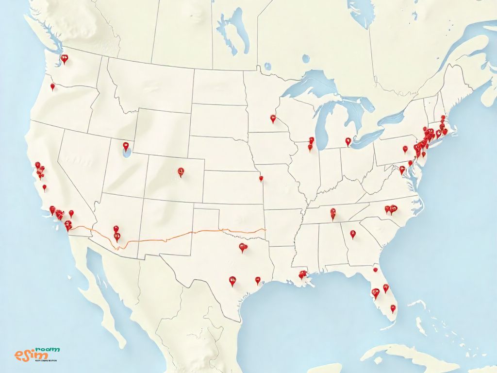 Roam Communication eSIM uses agreements with major U.S. carriers, providing strong 4G/5G signals across major cities and rural areas: